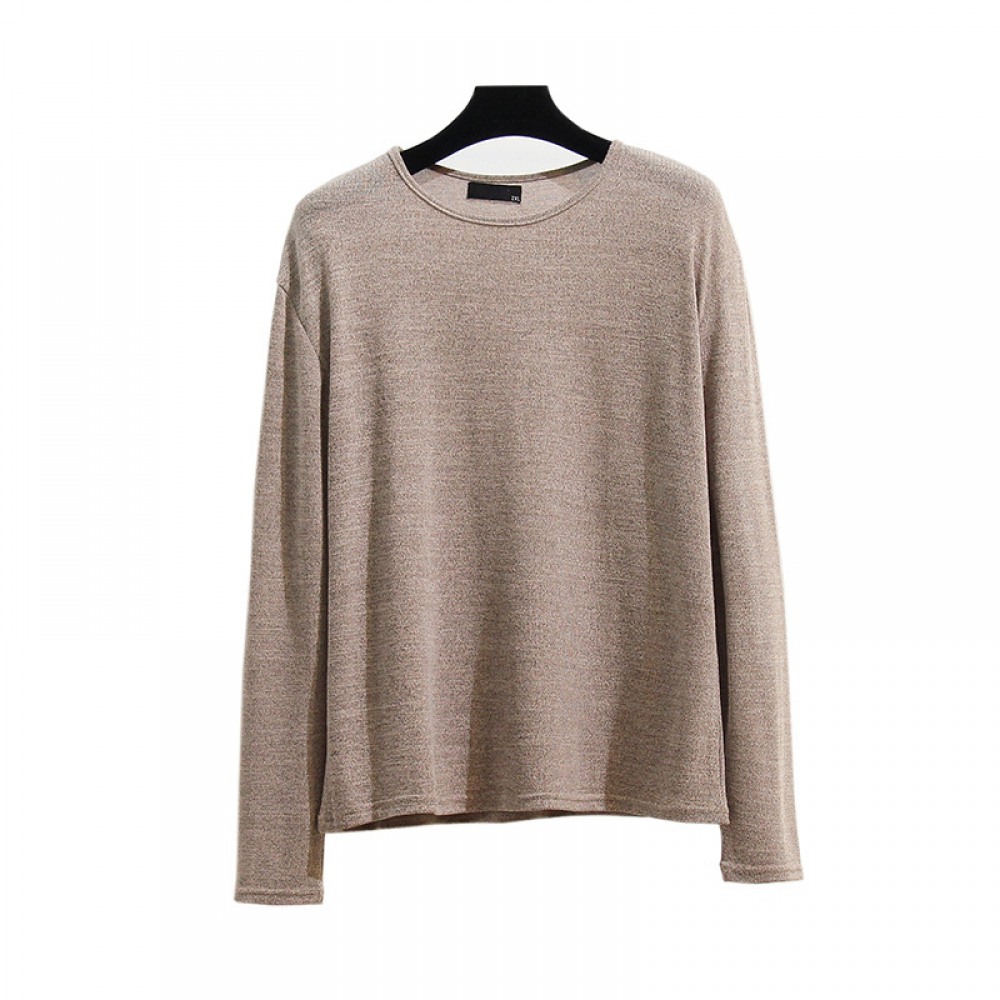 Autumn and Winter New Extra Plus Size Women's Fat Thin Round Neck T-Shirt Loose Long-Sleeved Bottoming Shirt