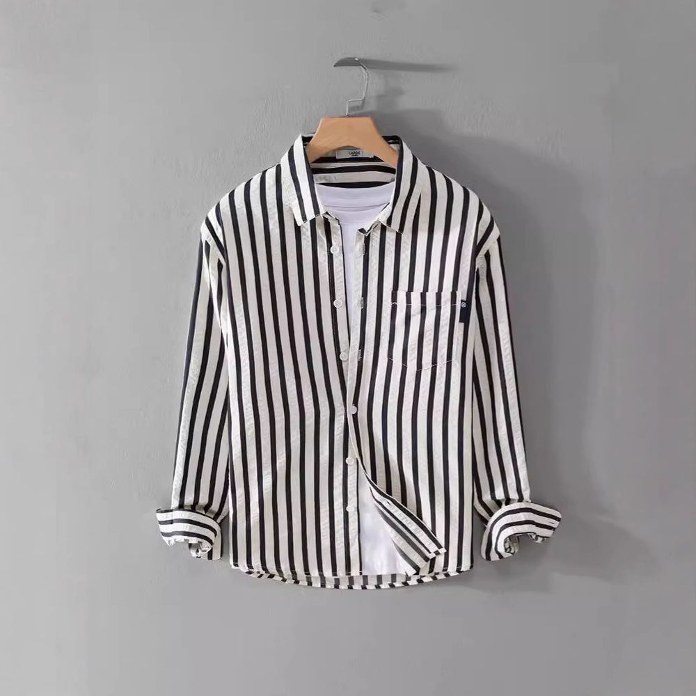 Long-sleeved Casual Men's Trendy Simple Striped Shirt