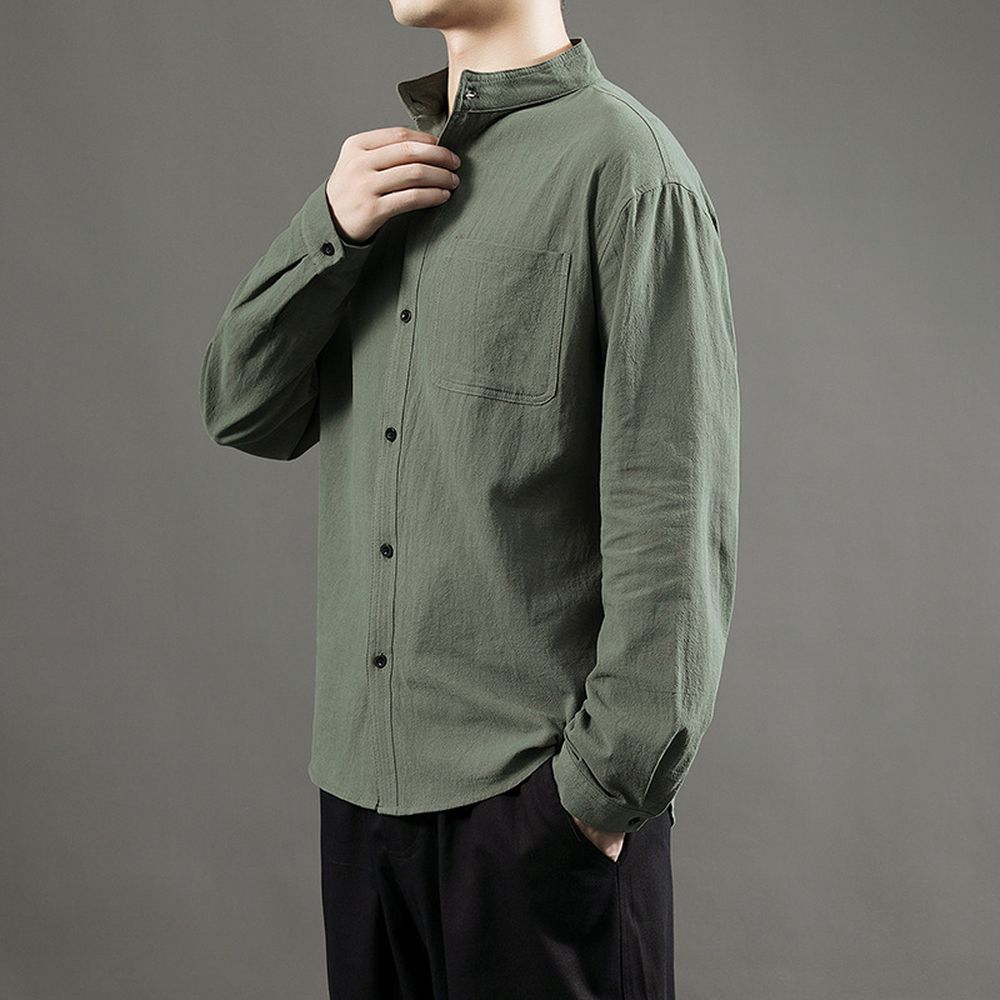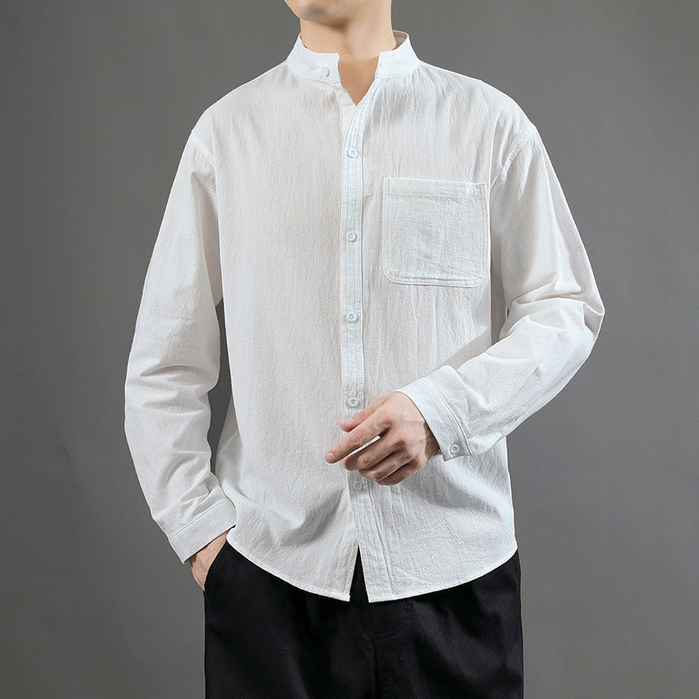 Men's Cotton and Linen Long-sleeved Shirt