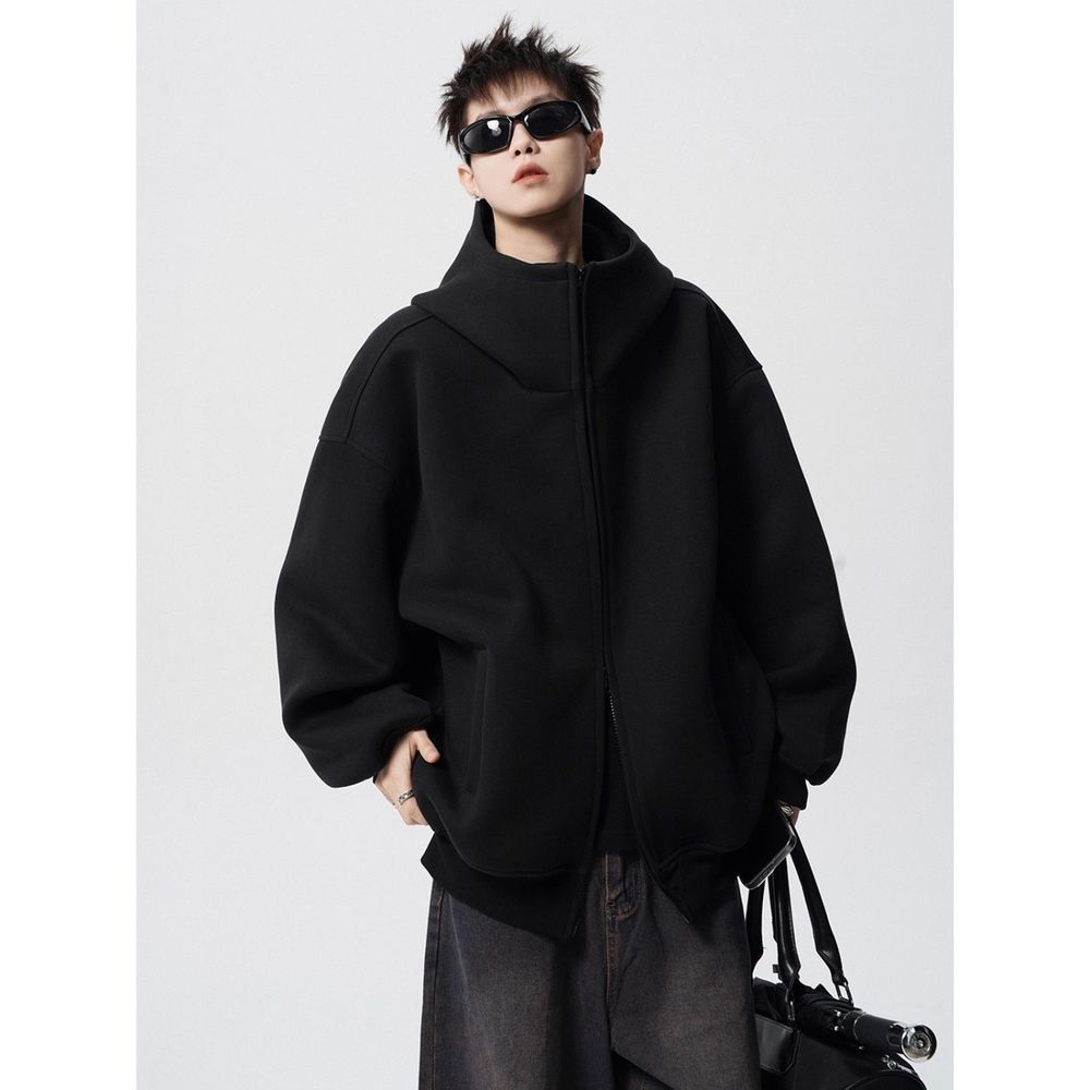 Half Turtleneck Zipper Sweatshirt Men's Winter Fleece Casual Loose Hoodie