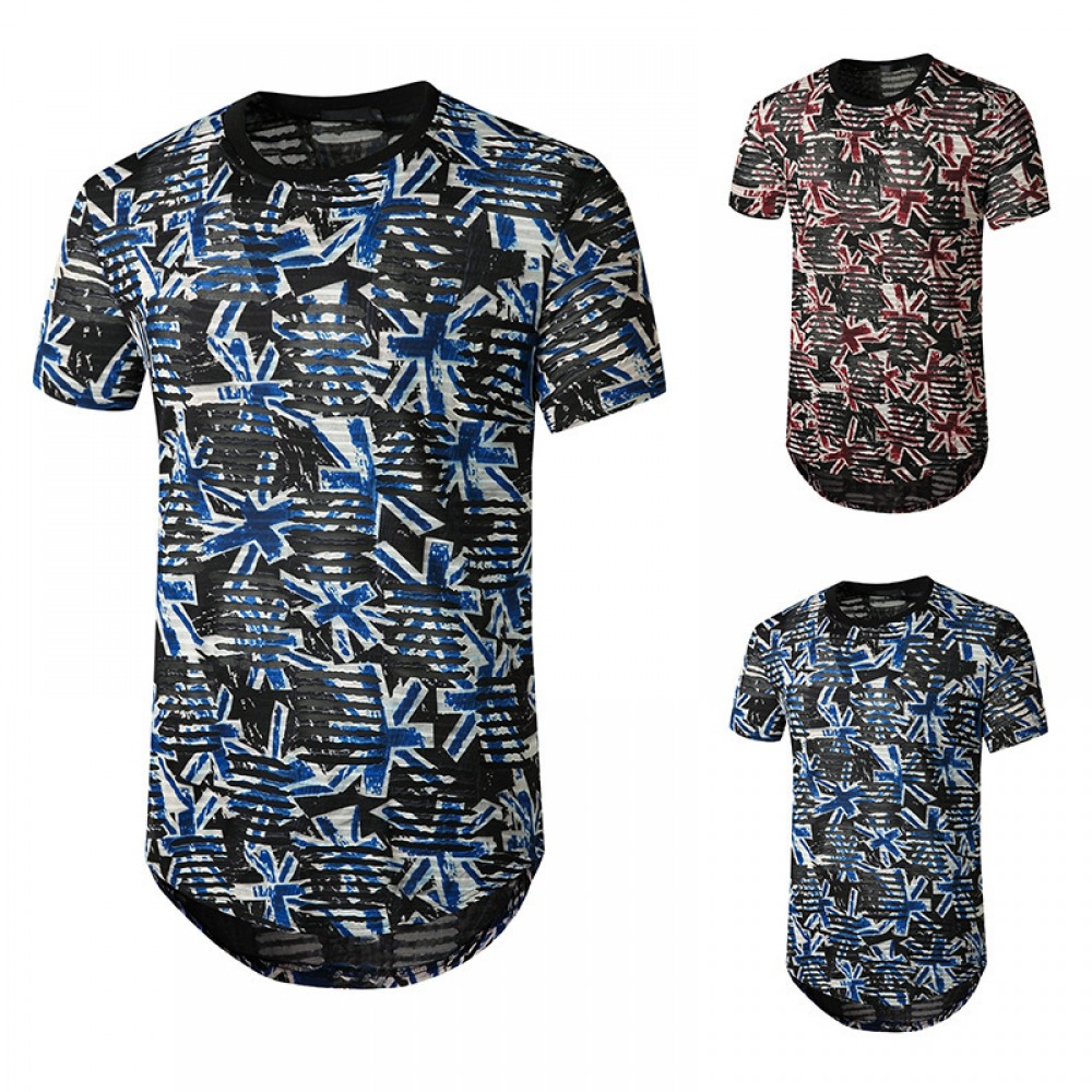 New Men's Plus Size Stars and Stripes Sailboat Print Short Sleeve T-Shirt