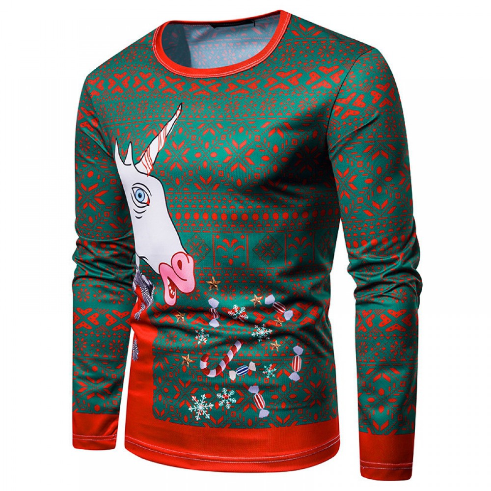 New 3D Personality Printing Fashion Men's Christmas Elk Pattern Long-Sleeved T-Shirt