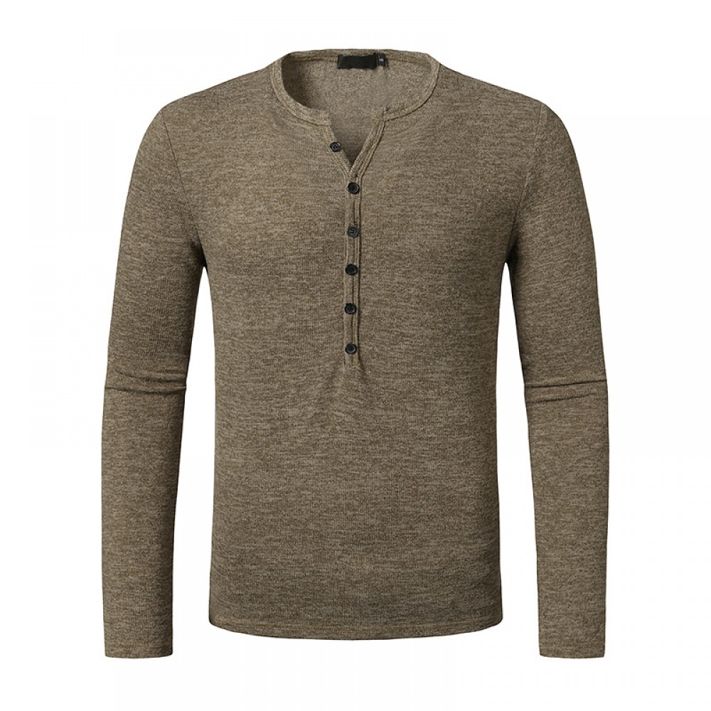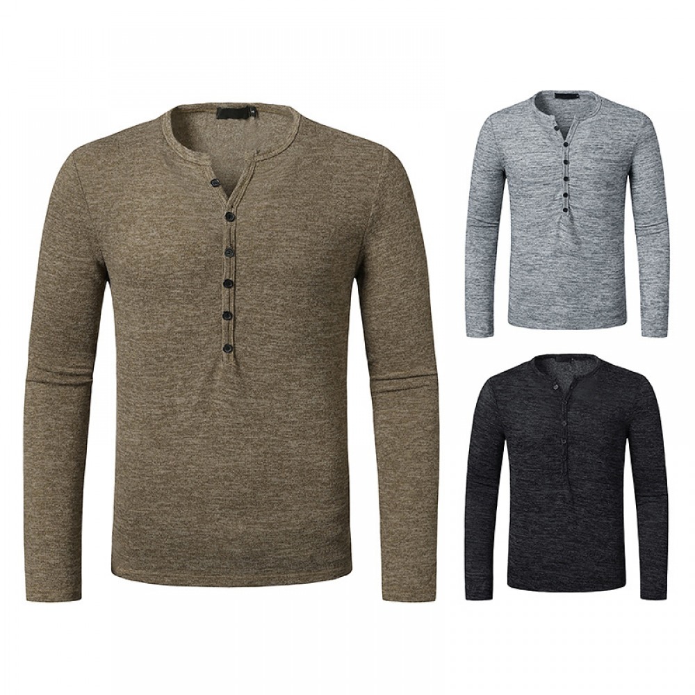 New Hollow Men's Autumn and Winter Long-Sleeved Base Waffle Henry Collar T-Shirt