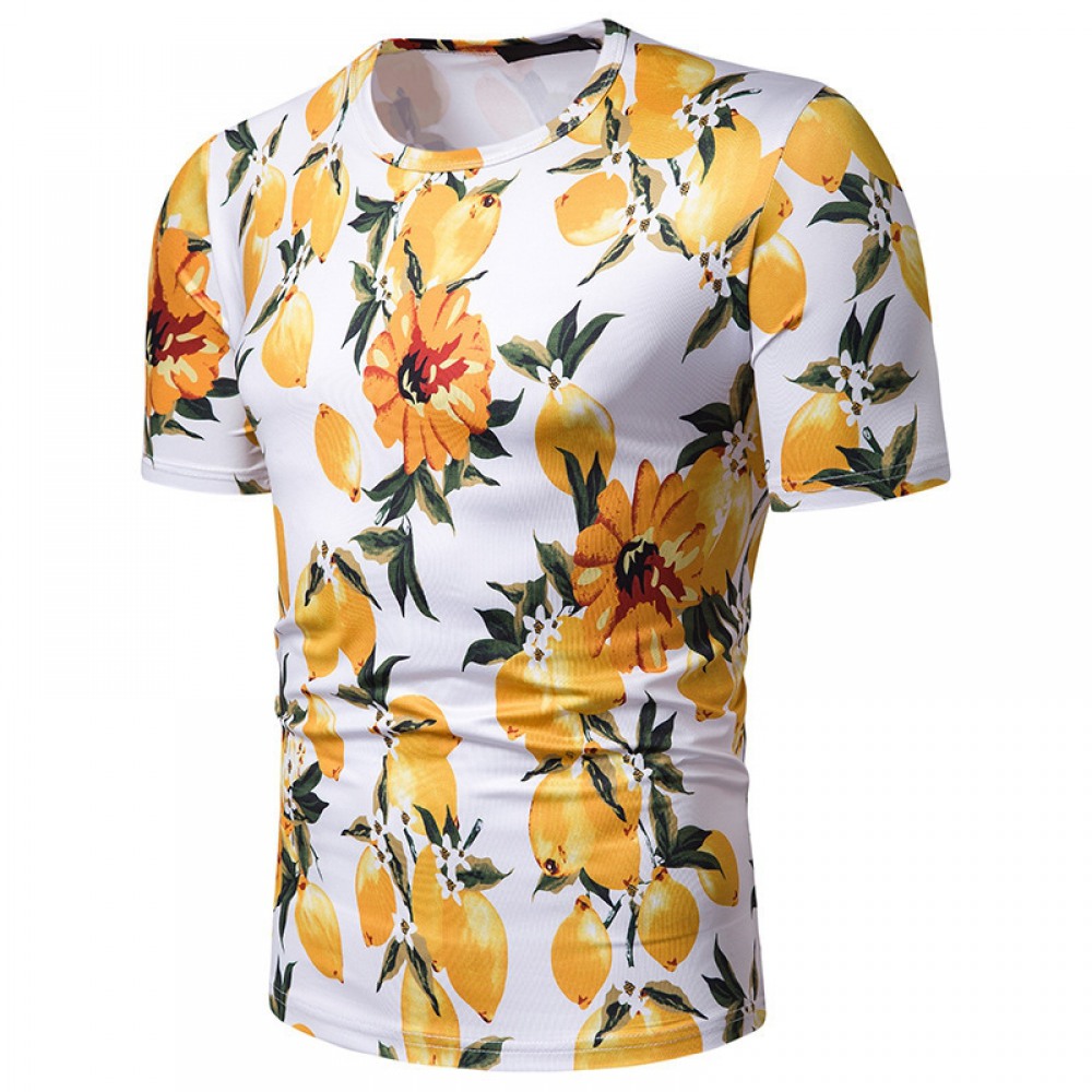 New Summer Men's Beach Style Printed Short-Sleeved T-Shirt