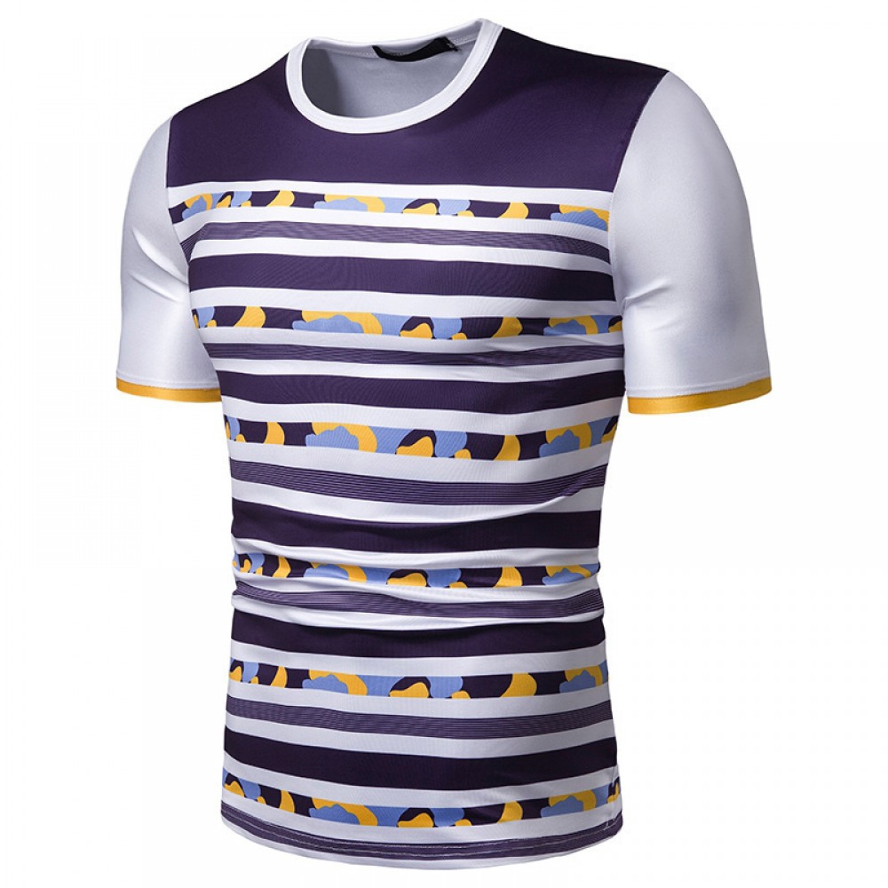 New Summer Men's Short-Sleeved T-Shirt Mens Contrast Striped Slim Casual T-Shirt