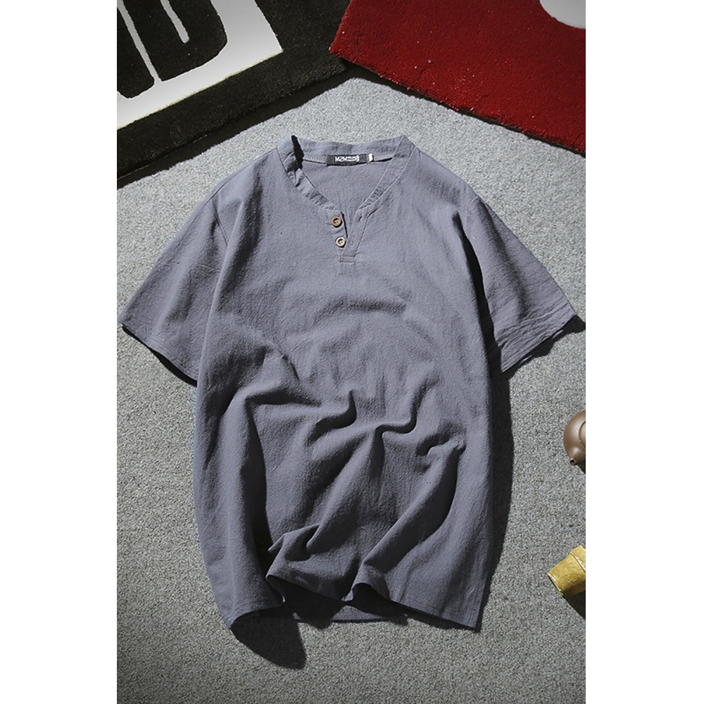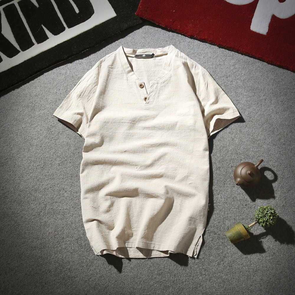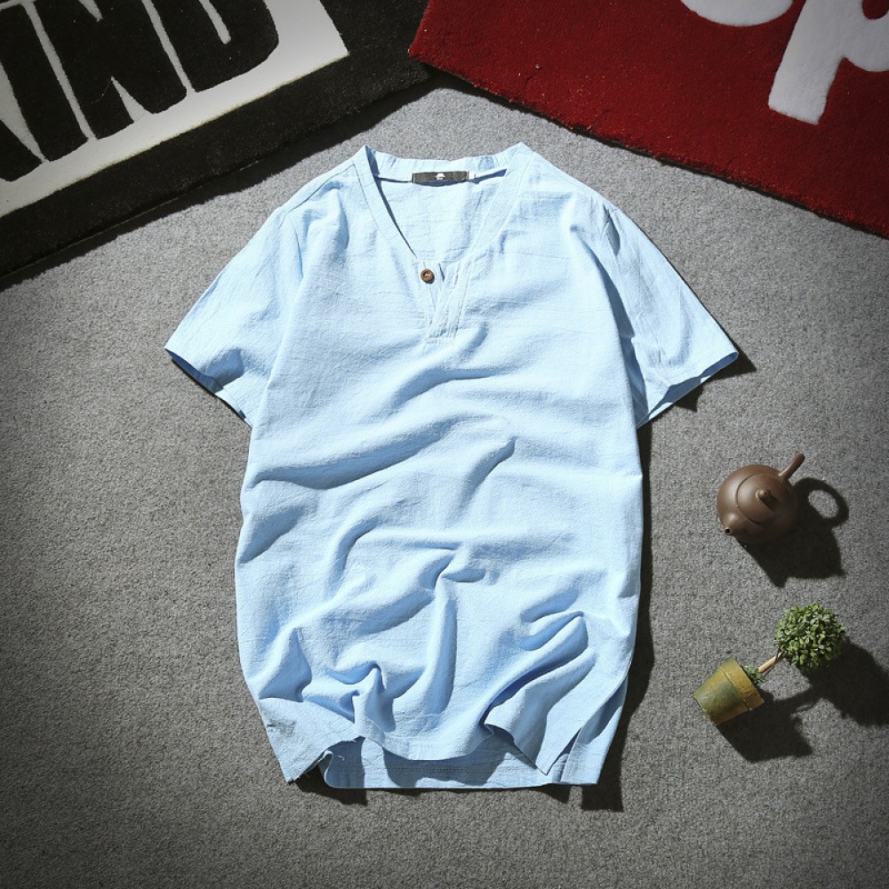 New Year New Cotton and Linen Summer Short-Sleeved T-Shirt Men's Retro V-Neck Large Size Men's Thin T-Shirt