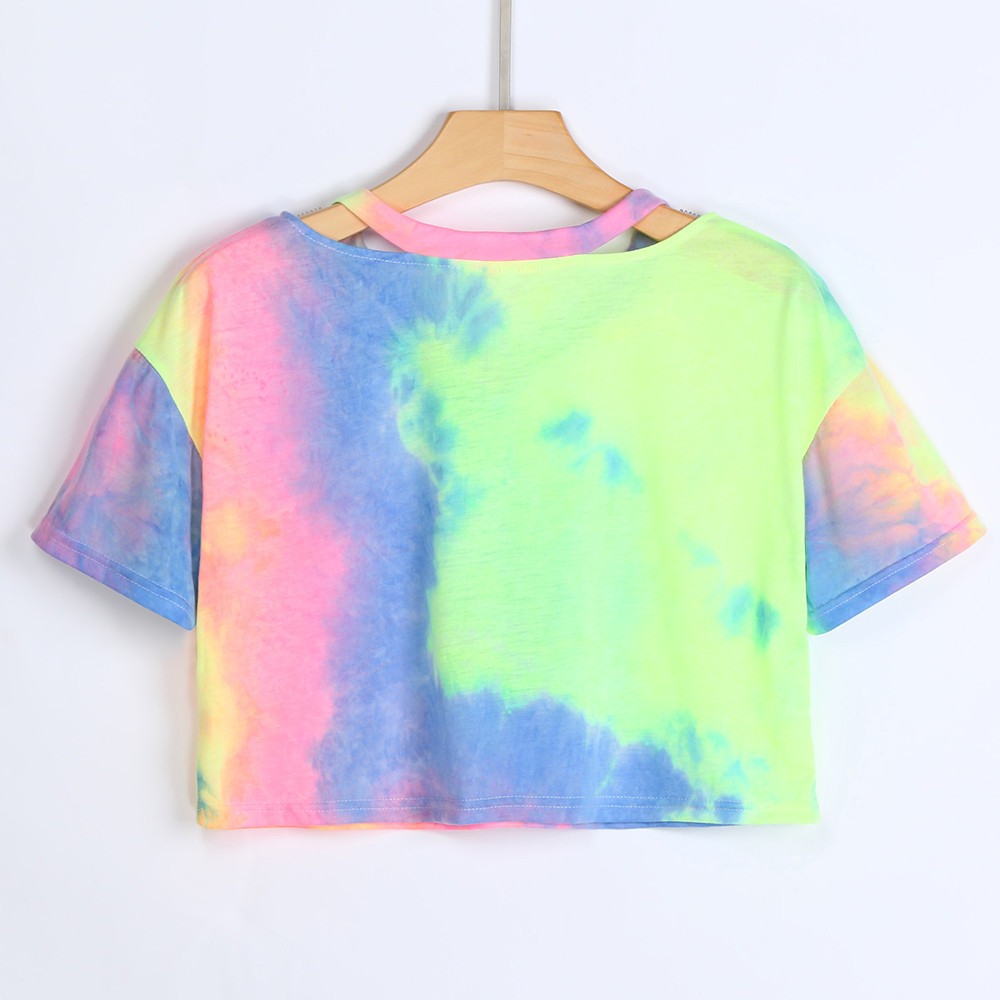 Summer New Hot Sale Tie-Dye V-Neck Short T-Shirt