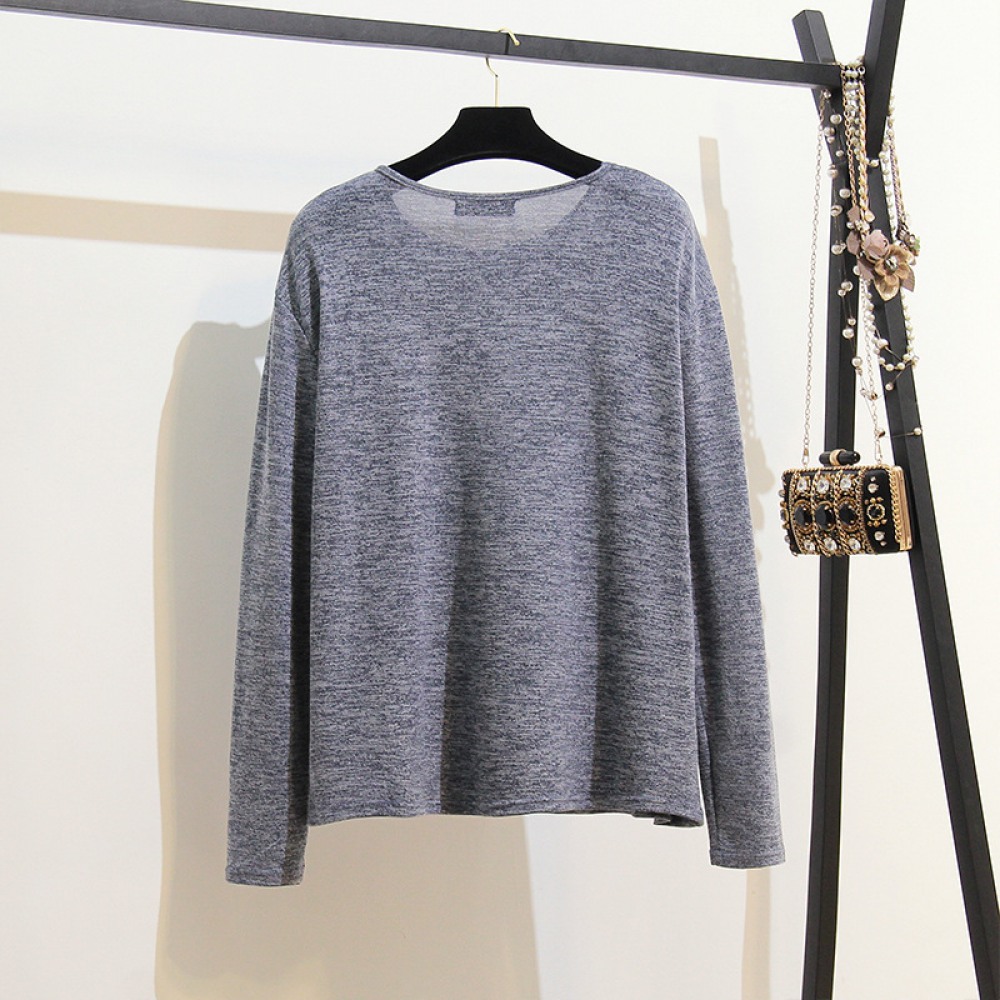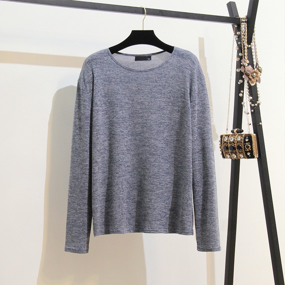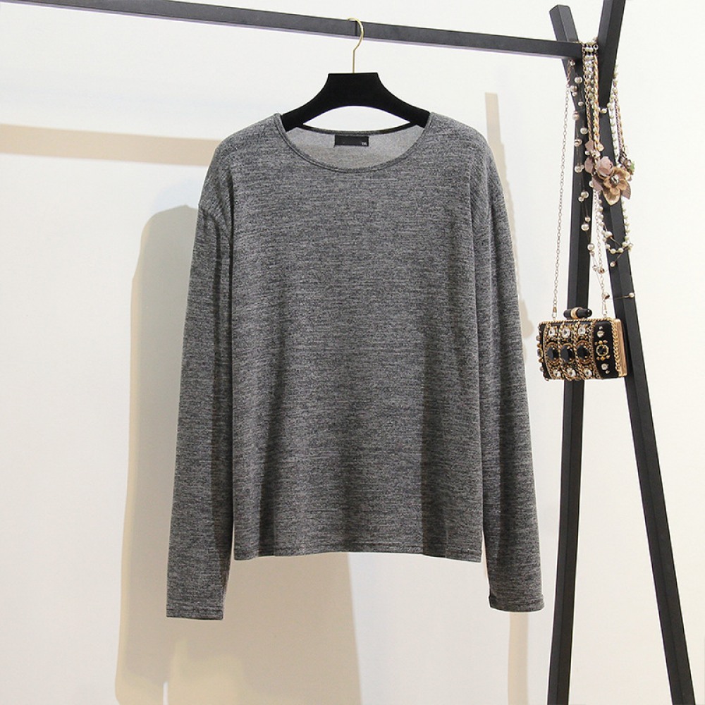 Autumn and Winter New Extra Plus Size Women's Fat Thin Round Neck T-Shirt Loose Long-Sleeved Bottoming Shirt