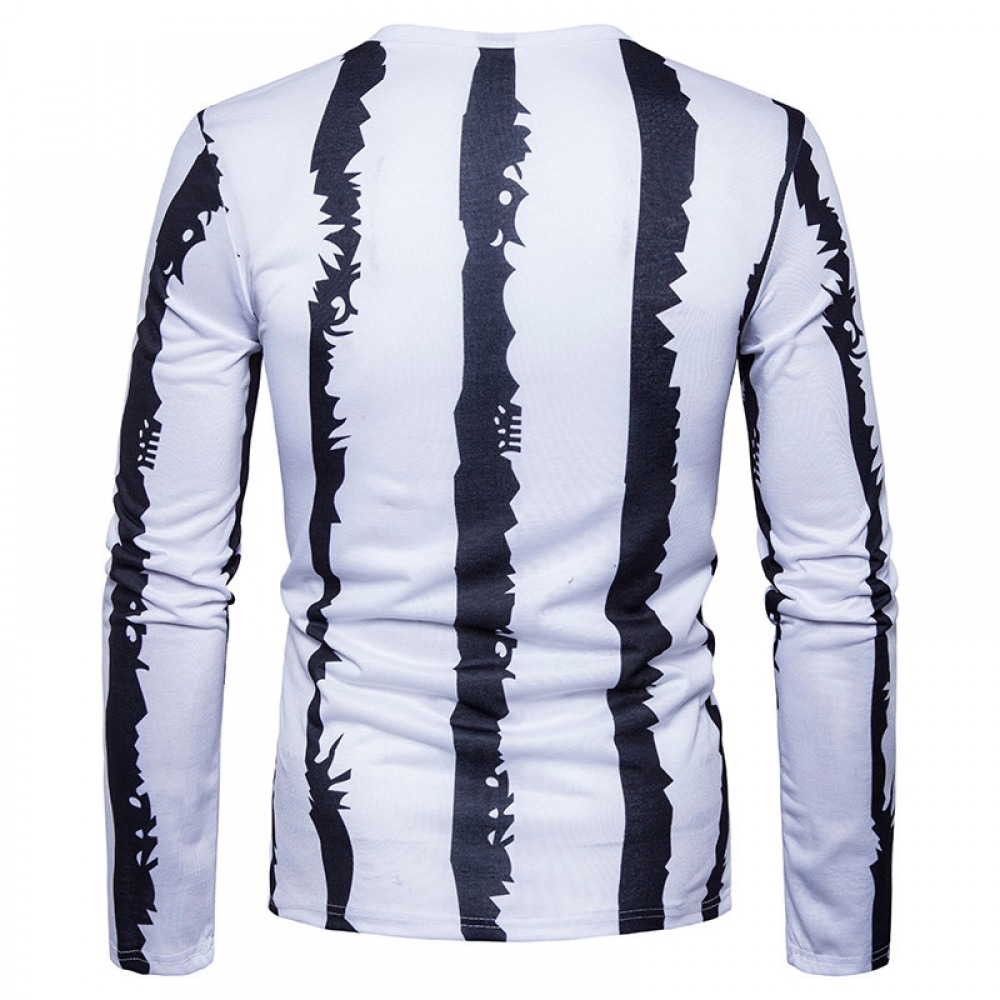Fashion Men's Black and White Wave Dot 3D Printing Round Neck Long Sleeve T-Shirt
