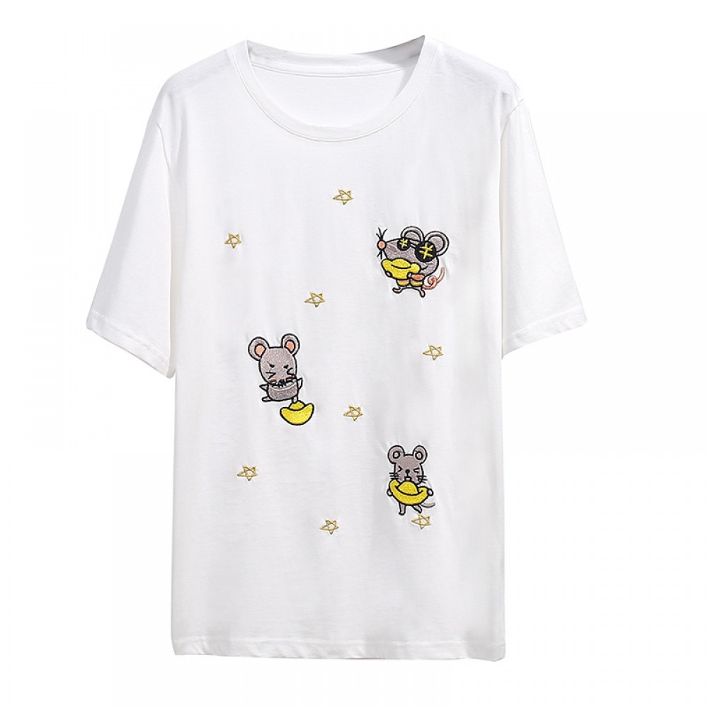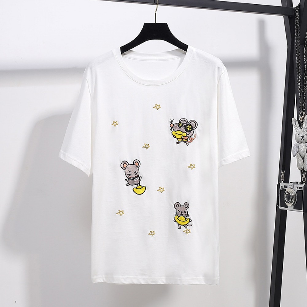 Extra Large Size Women's Fat Summer Short-Sleeved T-Shirt With Embroidery Loose Plus Size Top