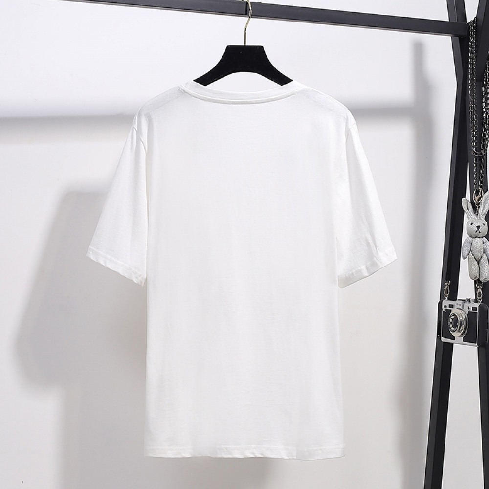 Round Neck Fat Sequined Top New Oversized Women's Loose Embroidered Short-Sleeved T-Shirt