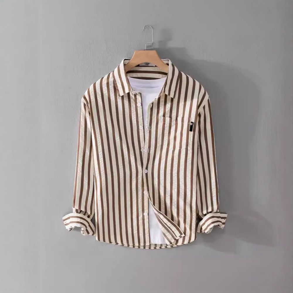 Long-sleeved Casual Men's Trendy Simple Striped Shirt