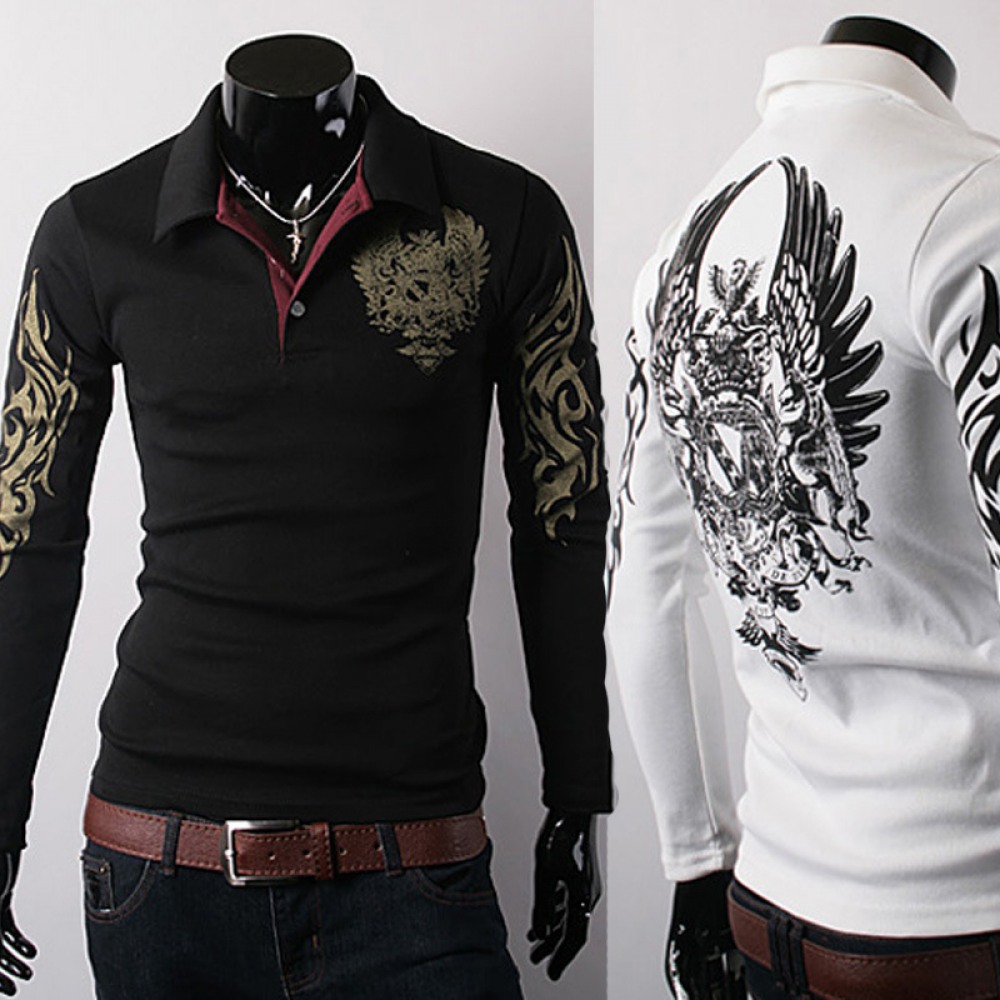 Men's Long-Sleeved T-Shirt Lapel Big Eagle Printing Casual Men's Clothing