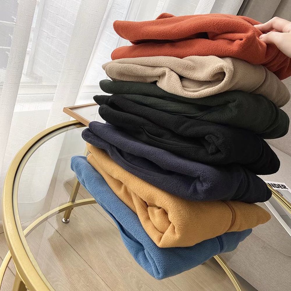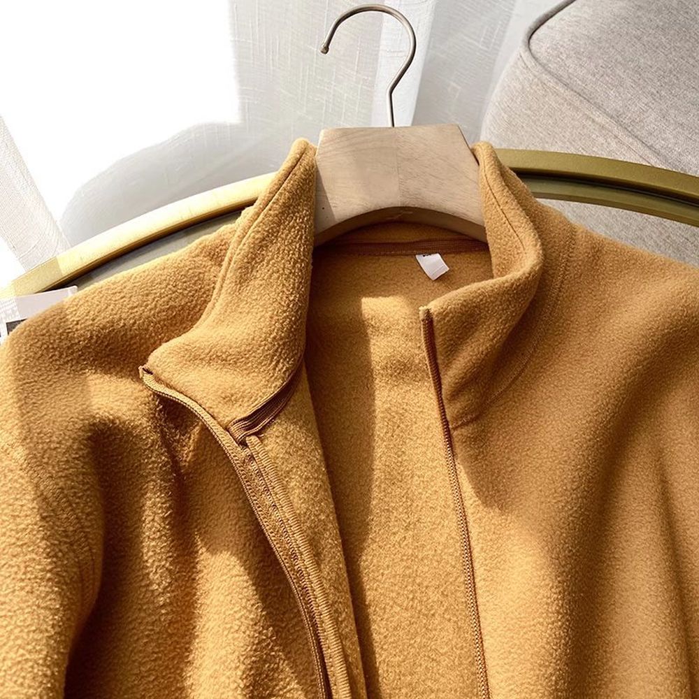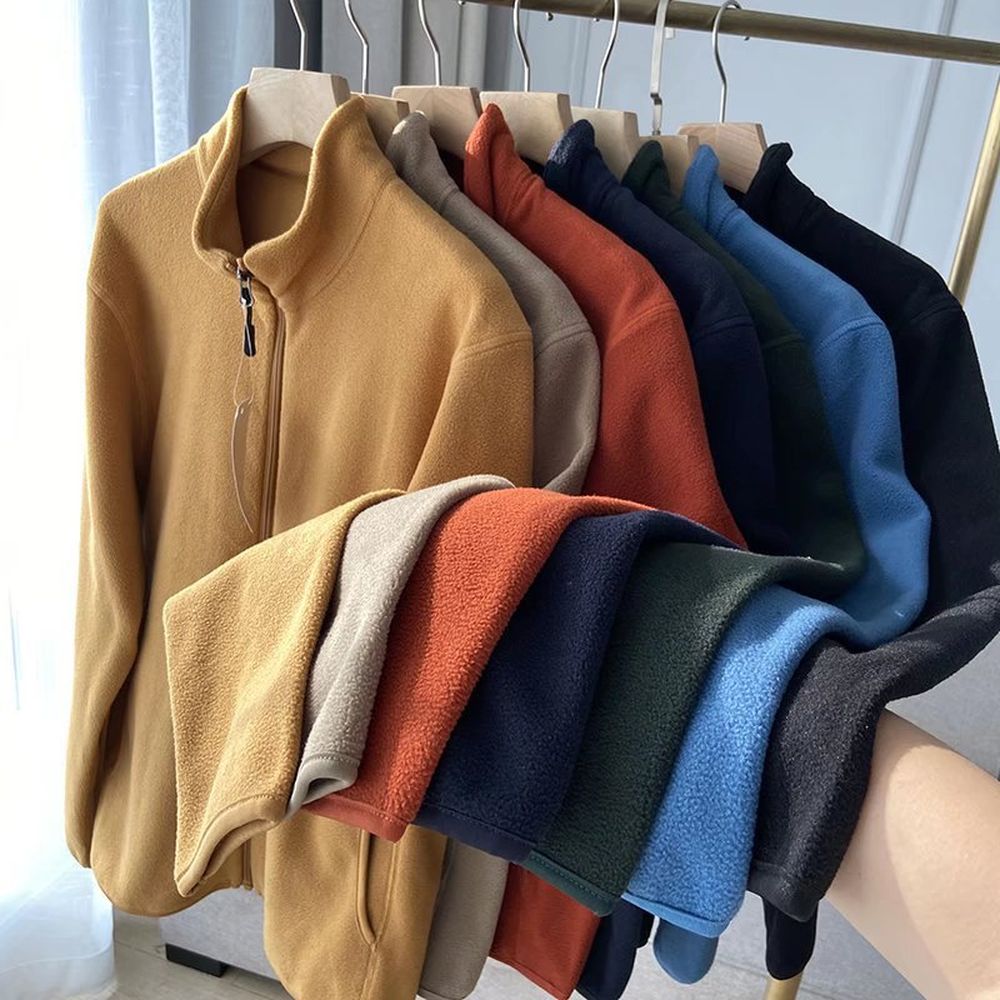 Men's Stand Collar Zipper Cardigan Thick Warm Polar Fleece Solid Color Jacket