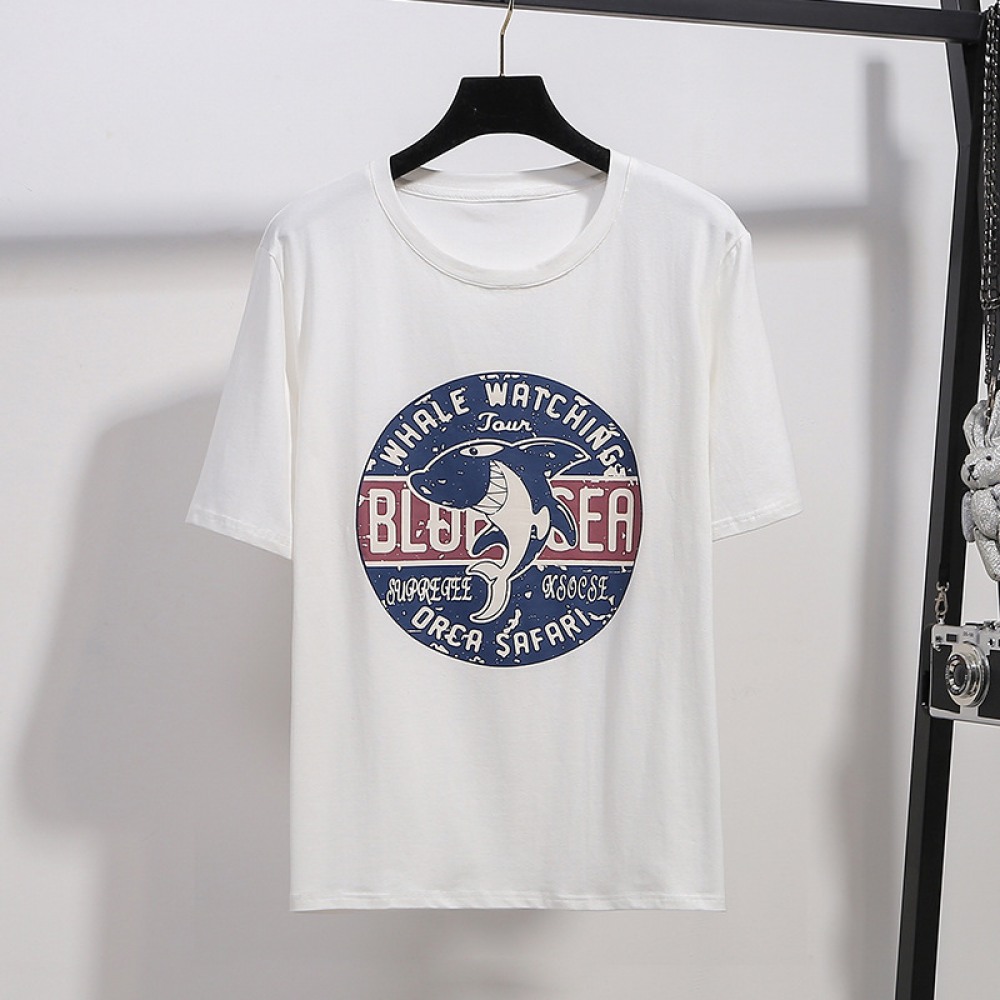 Plus Size Women's Summer Dress Super Large Size Cover Meat Top Summer Round Neck Printing Short Sleeve T-Shirt Women