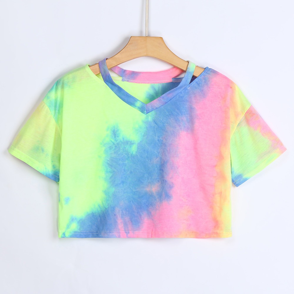 Summer New Hot Sale Tie-Dye V-Neck Short T-Shirt