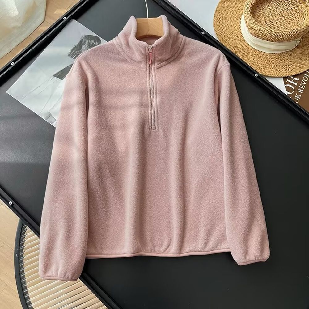 Women Jacket Half Zip Pullover Stand Collar Sweatshirt